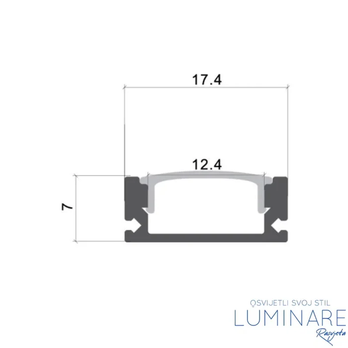 ALU. PROFIL ZA LED TRAKU NADGRADNI 2m