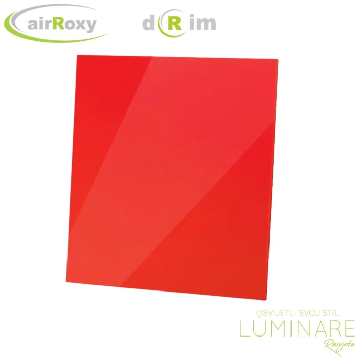 Panel je izrađen od kvalitetnog plexi materijala, dimenzija 175 × 175 mm, što osigurava kompatibilnost s airRoxy dRim ventilatorima promjera 100 mm i 125 mm, kao i s dRim dekorativnim rešetkama za prekrivanje ventilacijskih i ispušnih otvora. Njegova intenzivna crvena boja daje prostoru energičan, moderan i efektan izgled, što ga čini savršenim za kupaonice, WC-e, kuhinje, apartmane, hotelske sobe ili druge prostore u kojima želite stvoriti vizualni fokus.