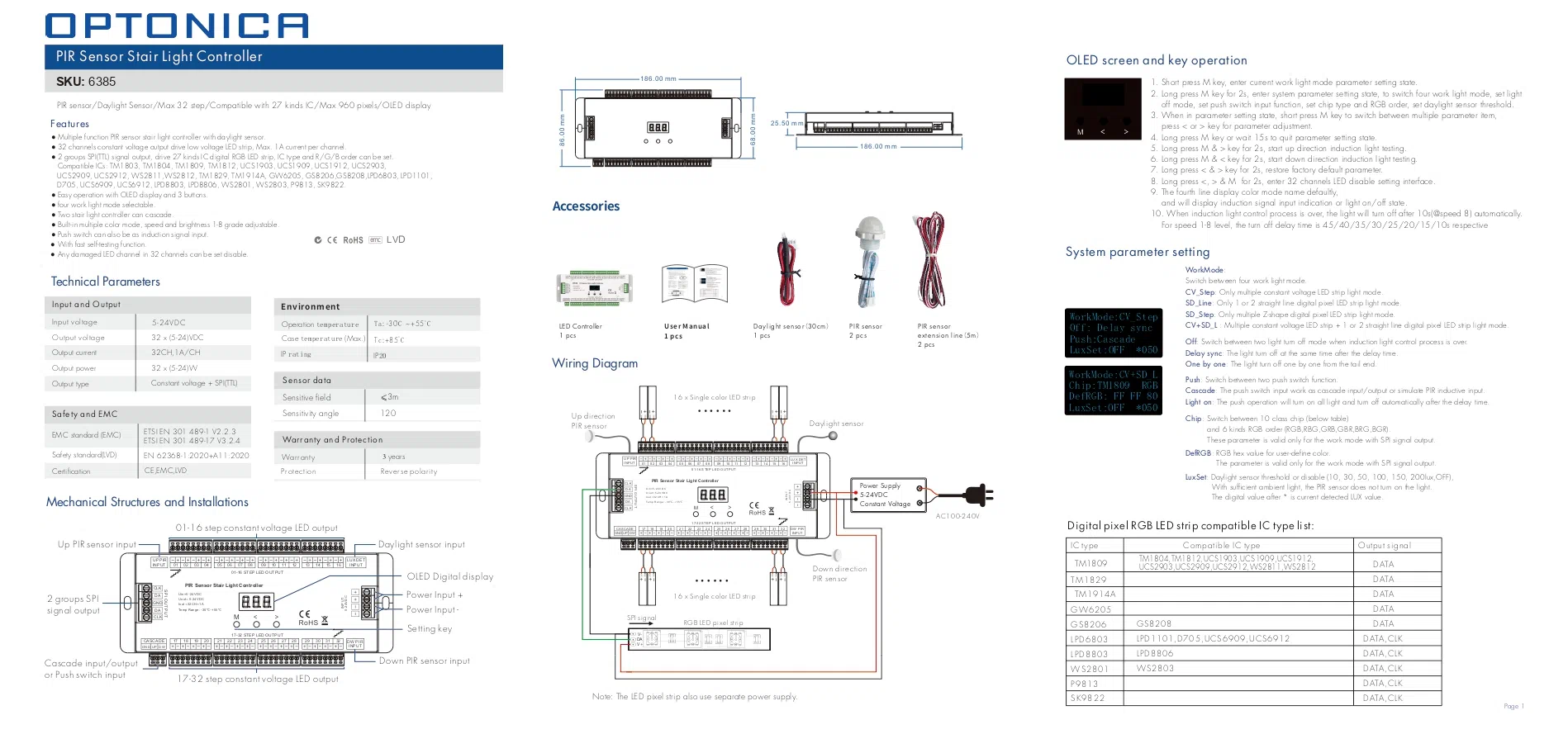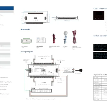Opremljen je OLED zaslonom koji vam omogućuje lako podešavanje postavki i praćenje statusa uređaja. Kompatibilan je s jednobojnim LED trakama ili digitalnim RGB LED trakama, pružajući vam širok izbor mogućnosti za stvaranje različitih svjetlosnih efekata.