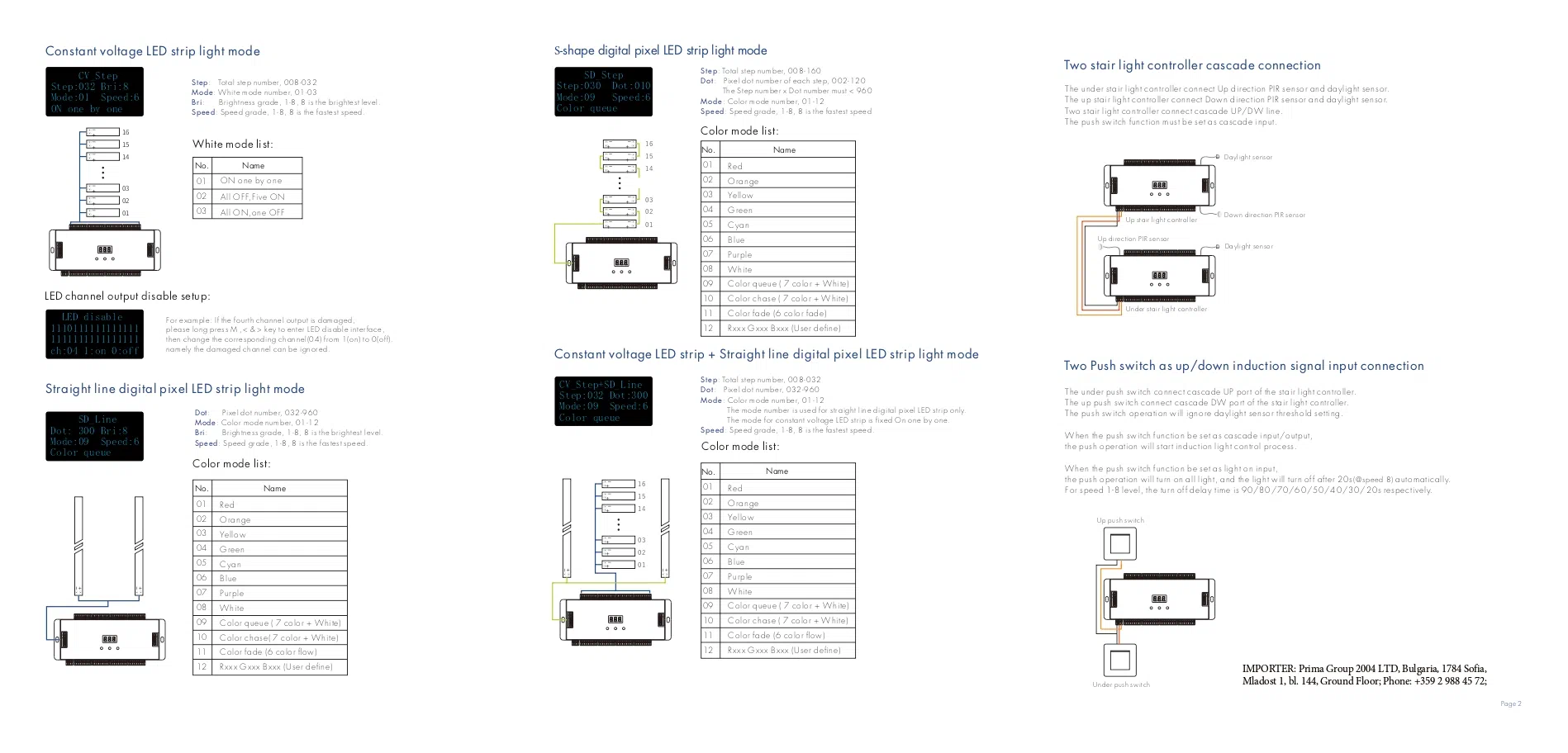Nadalje, kontroler omogućuje fino podešavanje brzine i svjetline rasvjete, omogućujući vam potpunu kontrolu nad atmosferom vašeg prostora. S modernim dizajnom i vrhunskim performansama, ovaj kontroler će vaše stepenice pretvoriti u istinsku atrakciju koja istovremeno pruža sigurnost i udobnost.