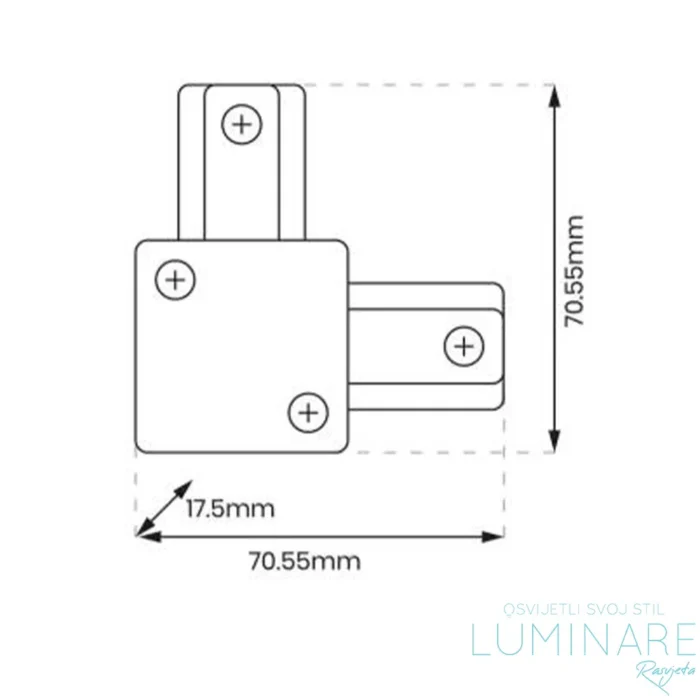Ovaj konektor omogućuje spajanje šina-tračnica pod kutem od 90°, pružajući Vam fleksibilnost i slobodu u dizajniranju osvjetljenja prema Vašim potrebama.