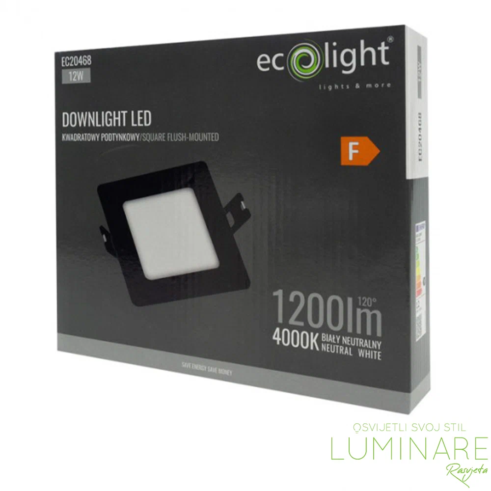 LED panel 12W kvadratni ugradbeni crne boje u neutralnoj boji svjetlosti. EC20468