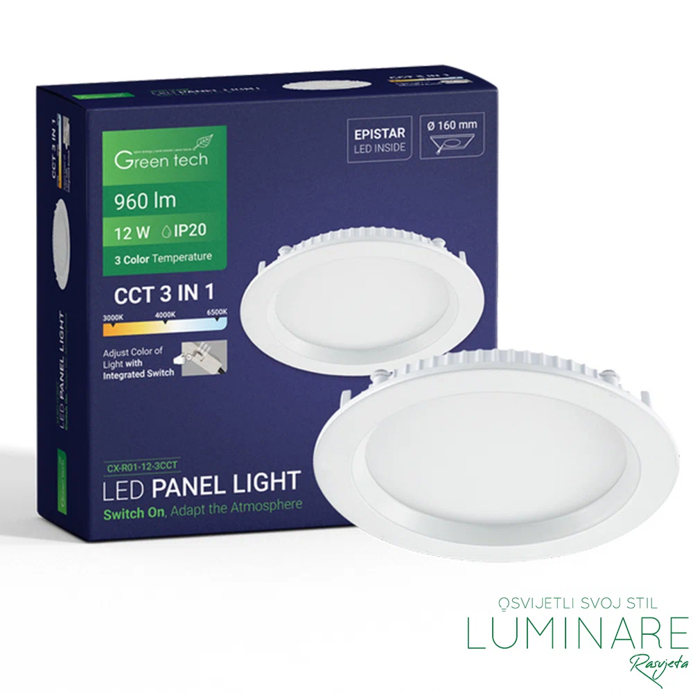 LED PANEL 12W OKRUGLI UGRADBENI BIJELE BOJE – prilagodljivo osvjetljenje uz CCT prekidač. CX-R01-12-3CCT