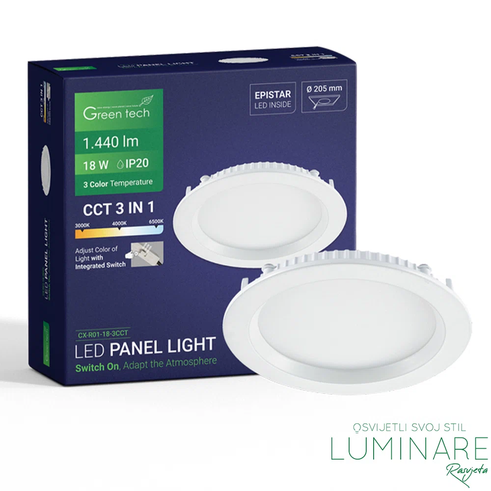 LED PANEL 18W OKRUGLI UGRADBENI BIJELE BOJE – prilagodljivo osvjetljenje uz CCT prekidač. CX-R01-18-3CCT