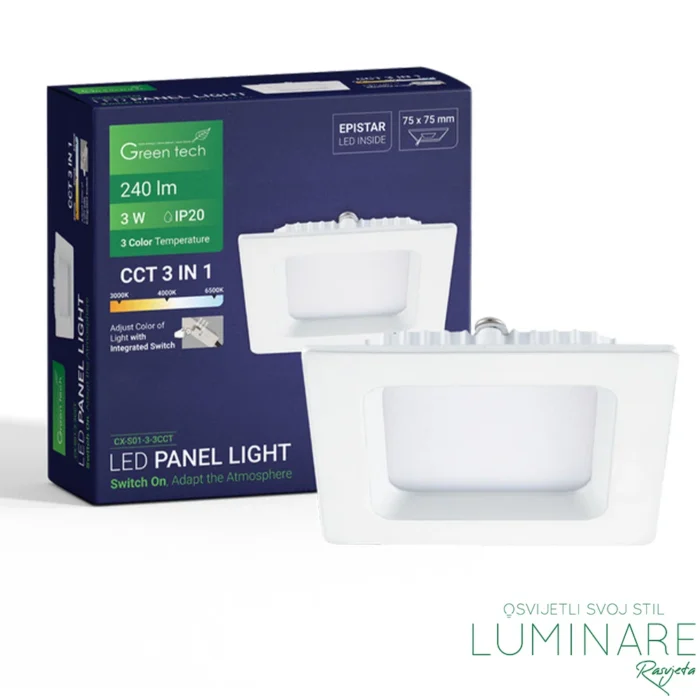 LED PANEL 3W KVADRATNI UGRADBENI BIJELE BOJE – prilagodljivo osvjetljenje uz CCT prekidač. CX-S01-3-3CCT