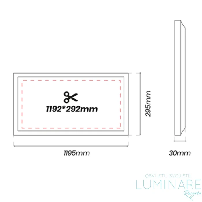 Ovaj ugradbeni LED panel dimenzija 1200x300mm i debljine 30mm idealno je rješenje za sve koji traže visoko kvalitetno i energetski učinkovito rasvjetno tijelo. Sa snagom od 40W i izuzetnom svjetlosnom izlaznošću od 4800 lumena, ovaj LED panel osigurava optimalno osvjetljenje u svakom prostoru. Dolazi s driverom i spaja se direktno na 220V.