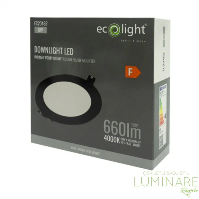 LED panel 6W okrugli ugradbeni crne boje u neutralnoj boji svjetlosti. EC20463