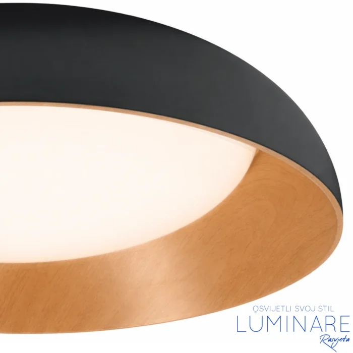 Za razliku od klasičnih svijetlih modela, ova LED plafonjera u crno-drvenoj kombinaciji donosi izraženiji vizualni kontrast koji odmah privlači pažnju. Crna baza daje dubinu i moderan karakter, dok drveni detalj ublažava ukupni dojam i čini rasvjetu pogodnom i za “toplije” interijere.