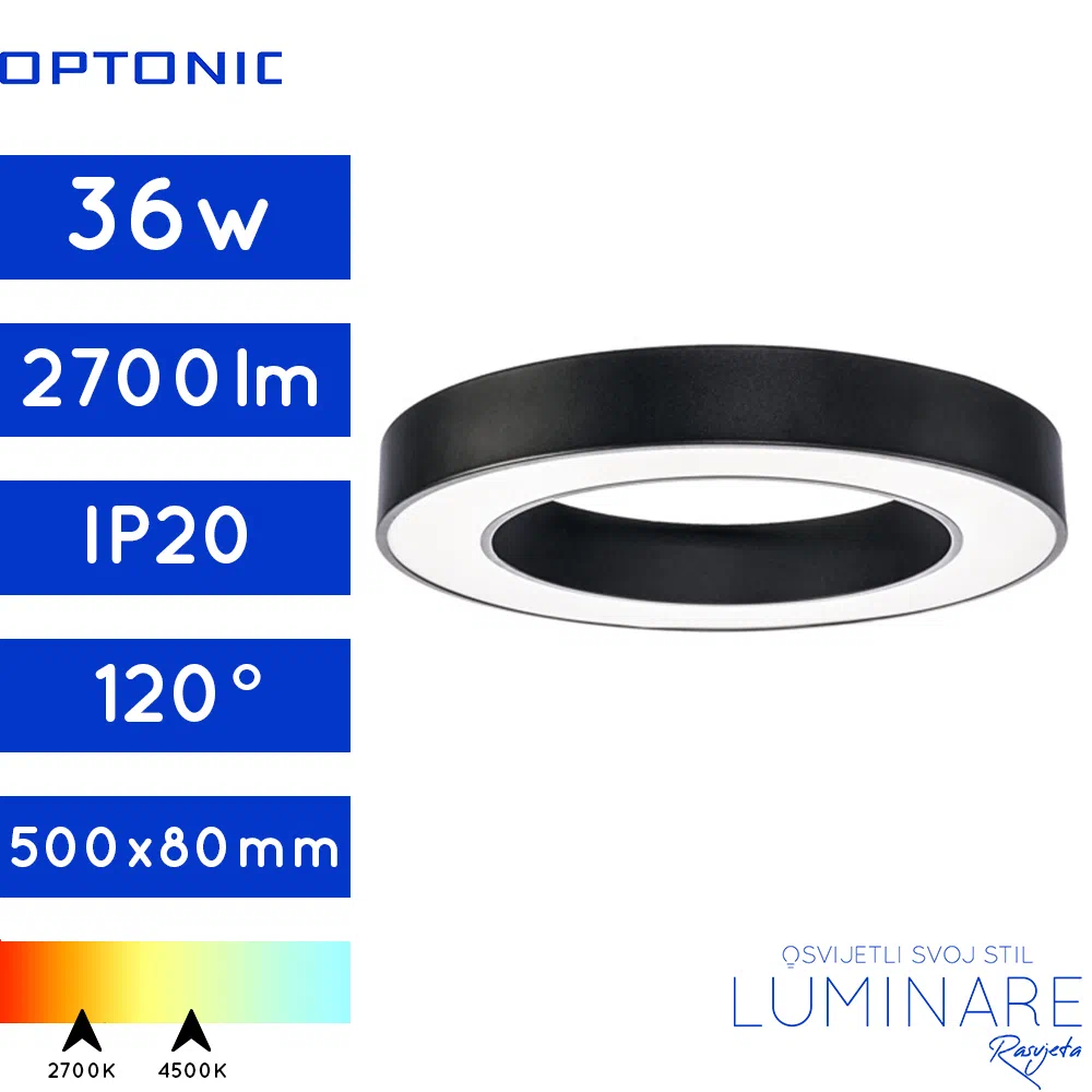 LED PLAFONJERA 36W OKRUGLA CRNA 500x80mm