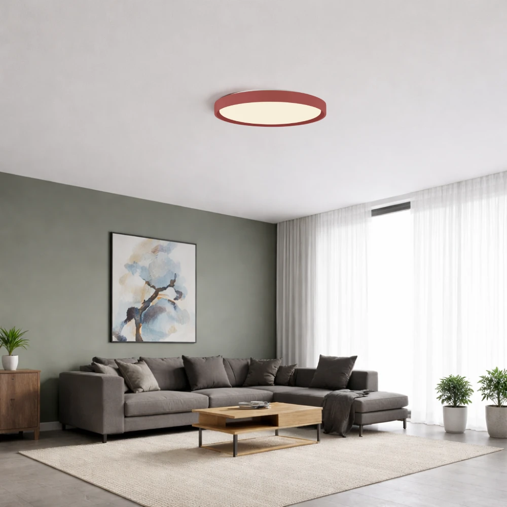 Ova LED plafonjera u kombinaciji bijele i red velvet nijanse nije tipičan izbor – i upravo je u tome njezina prednost. Namijenjena je prostorima koji žele malo više karaktera, bez odricanja od funkcionalnosti i kvalitetnog osvjetljenja.