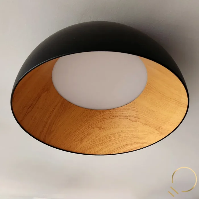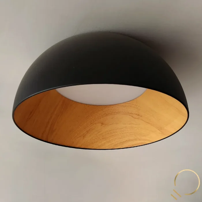 Sa elegantnom kombinacijom mat crne boje izvana i tople drvene teksture iznutra. Ova LED plafonjera u obliku kupole ističe se svojim profinjenim dizajnom koji savršeno spaja modernu estetiku s prirodnim elementima.