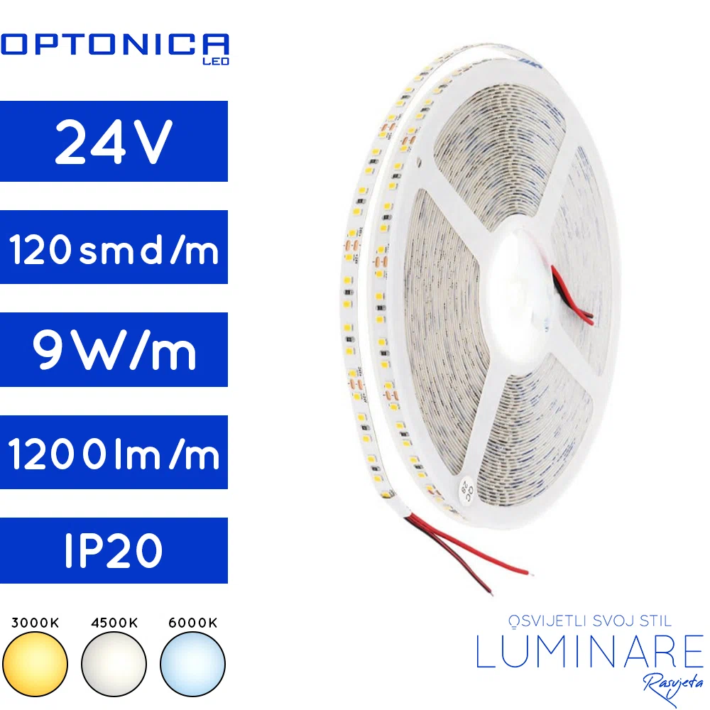 LED TRAKA 2835 24V 9W/m 1200lm/m 120LED/m IP20 – 20 metara 3000K / 4500K / 6000K – 4867 / 4866 / 4865