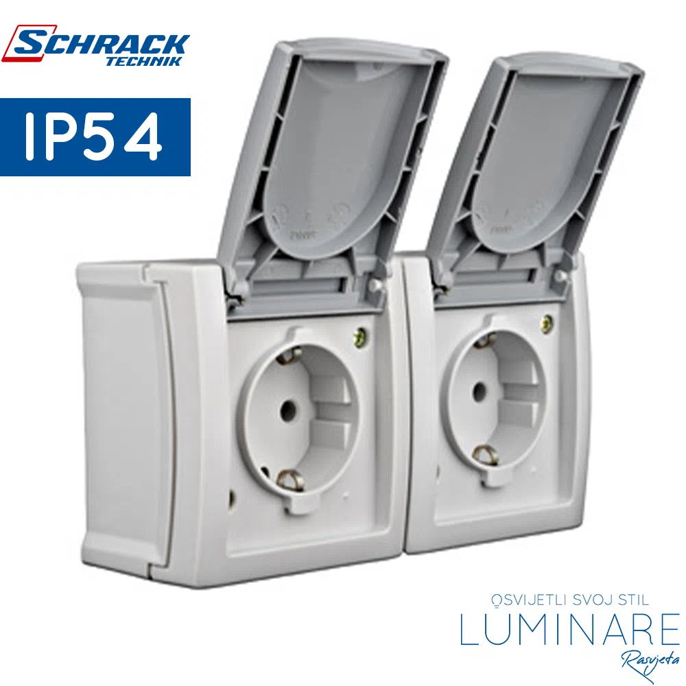DVOSTRUKA NADGRADNA UTIČNICA SA POKLOPCEM, HORIZONTALNA IP54, SCHRACK VISIO