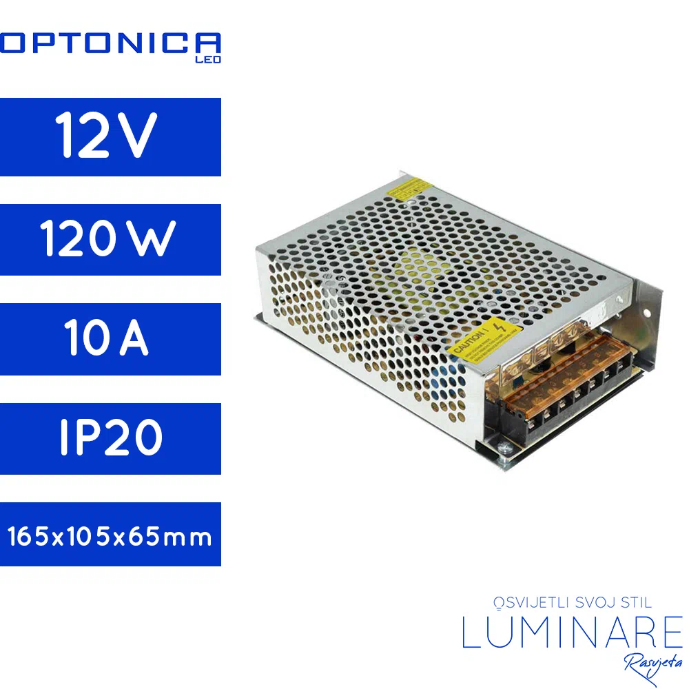 Optonica napajanje za LED trake 12V 120W iz Standard serije pouzdano je i snažno rješenje za zahtjevnije LED projekte. Sa snagom od 120W i izlaznim naponom od 12V DC, ovaj model je idealan za napajanje većih duljina LED traka ili instalacija koje zahtijevaju visoku stabilnost i kontinuiran rad bez gubitka kvalitete svjetla.