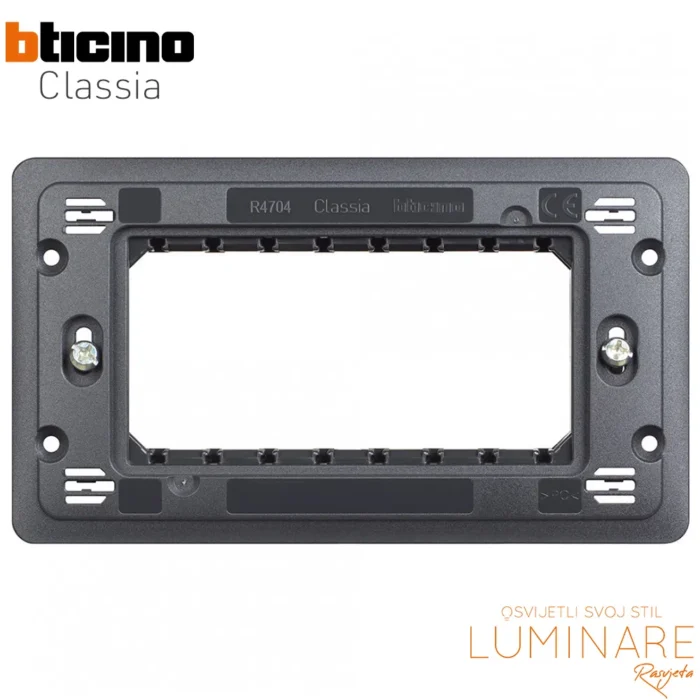 Nosivi okvir BTicino Classia predstavlja spoj elegantnog dizajna i vrhunske funkcionalnost. Ovaj okvir je ključan element modularnog sustava Classia, omogućujući vam da lako kombinirate različite module poput prekidača, utičnica i drugih električnih elemenata u jednu cjelinu.
