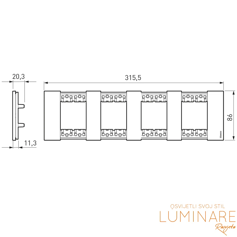 NAPOMENA: 4x2M ukrasni okvir je specifično dizajniran za montažu na 4x 2M nosiva okvira kompatibilna isključivo sa nizajućim razvodnim kutijama S MOGUĆNOŠĆU PRIČVRŠĆIVANJA VIJCIMA.