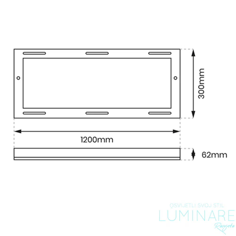 Tražite kvalitetno i estetski usklađeno rješenje za površinsku montažu LED panela dimenzija 120×30 cm? Ovaj nadgradni okvir visine 62 mm idealan je izbor za sve prostore u kojima nije moguće ugraditi LED panele u spušteni strop. Izrađen je od čvrstog aluminija s premazom koji jamči dugotrajnost, otpornost na koroziju i moderan izgled.