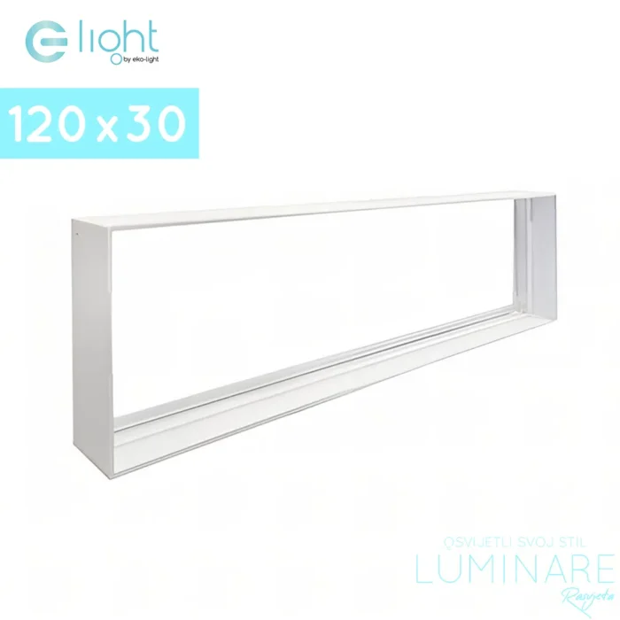 Ako tražite pouzdano rješenje za nadgradnu montažu LED panela 120×30, ovaj okvir pruža odličan omjer cijene, kvalitete i kompatibilnosti s popularnim brendom E-Light.