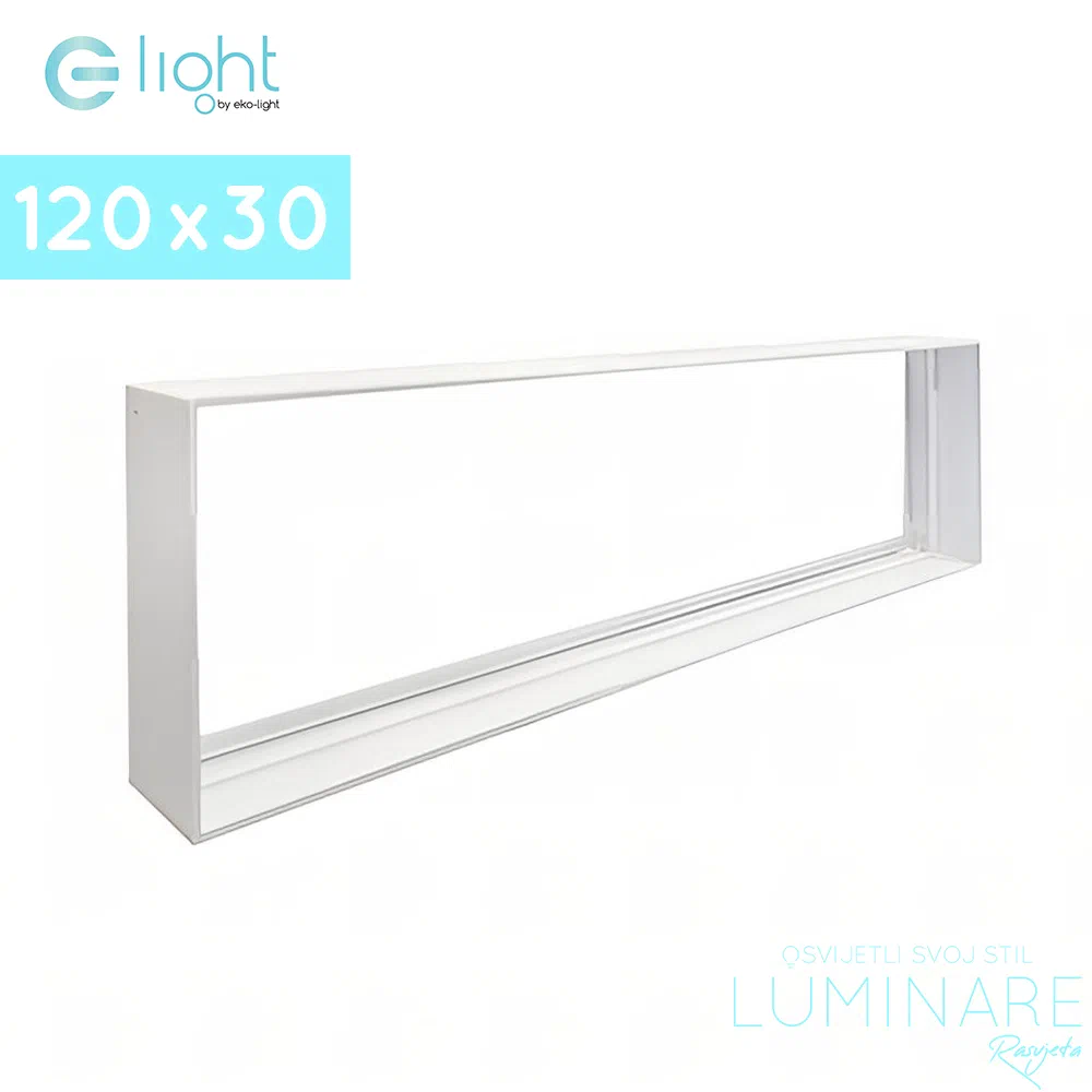Nadgradni okvir za LED panel 120×30 bijele boje – visine 62 mm, kompatibilan s E-Light panelima. EKP0576
