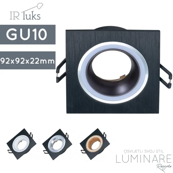 Ovaj ugradbeni okvir za žarulju dolazi u četvrtastom obliku i sastoji se od dva dijela: unutarnjeg i vanjskog prstena.
