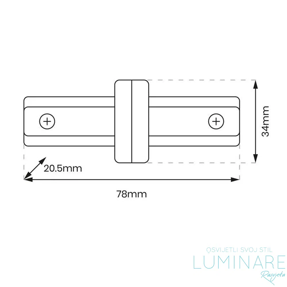 Ovaj konektor omogućuje spajanje više šina-tračnica u jednu dužinu, pružajući Vam fleksibilnost i slobodu u dizajniranju osvjetljenja prema Vašim potrebama.
