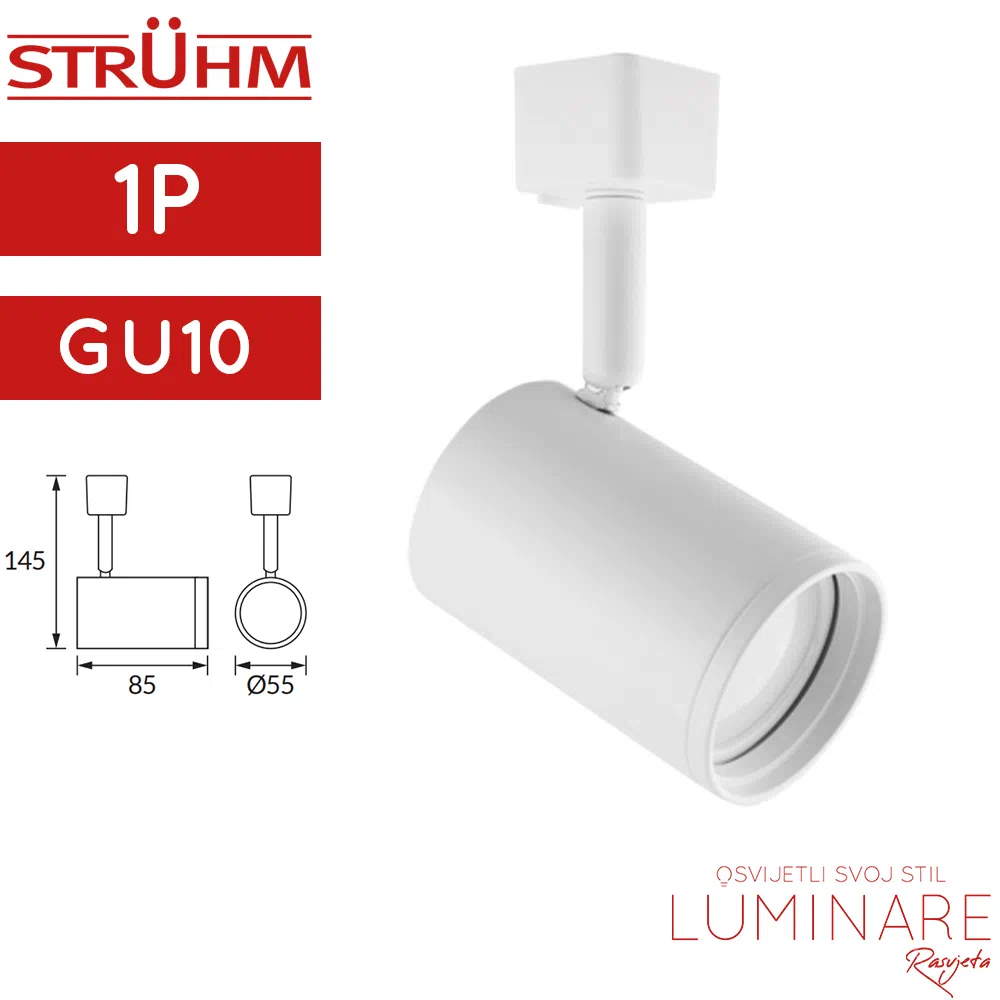 Kučište bijele boje za GU10 žarulju koje ima spojnicu za postavljanje u monofaznu šinu. Idealno jer ostavlja mogućnost izbora GU10 žarulje po želji kao i laku zamjenu istih.