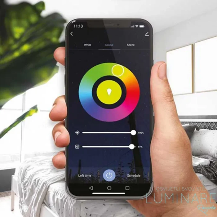 Ova žarulja se kontrolira putem mobilne aplikacije i povezuje se direktno na WiFi mrežu, što omogućuje potpunu kontrolu rasvjete sa pametnog telefona ili tableta. Kroz aplikaciju možete paliti i gasiti svjetlo, mijenjati boje, podešavati intenzitet, čime se postiže potpuna personalizacija rasvjetnog ambijenta u vašem domu ili poslovnom prostoru.