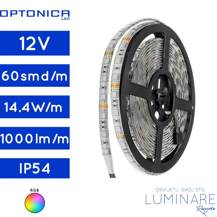 RGB LED TRAKA 5050 12V 14.4W 60SMD/m IP54 5m