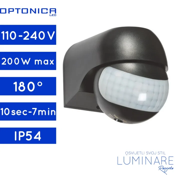 SENZOR POKRETA ZIDNI IP54 CRNI