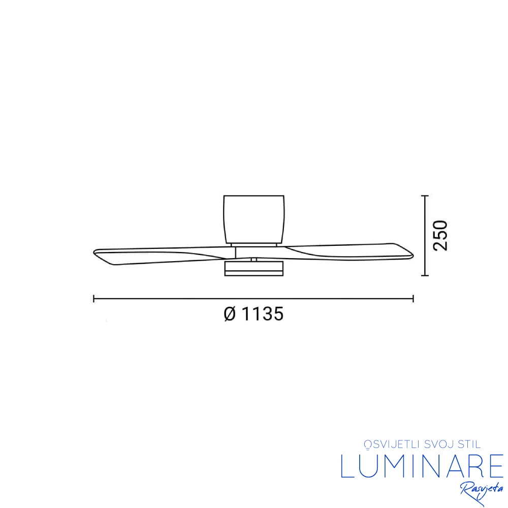 Kućište ventilatora izrađeno je od kvalitetnih materijala poput ABS plastike i metala, što osigurava dugotrajnost i pouzdan rad. Promjer ventilatora od približno 1135 mm omogućuje učinkovito strujanje zraka u srednje velikim prostorijama.