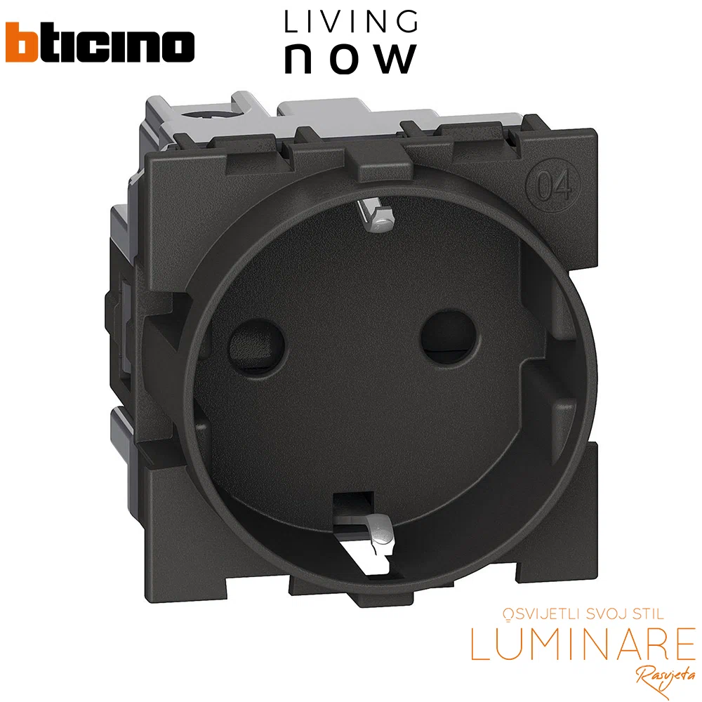 Bticino Living Now šuko utičnica 2M u crnoj boji – Pouzdana snaga u elegantnom formatu (KG4141)