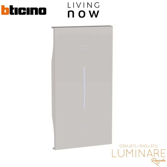 Bticino Living Now 2M tipka za tipkalo za rolete u pijesak boji (KM05M2) kombinira toplinu prirodnih tonova s modernom funkcionalnošću. Dizajnirana za tipkalo za rolete (K4037N), omogućuje jednostavno i praktično upravljanje roletama jednim dodirom.