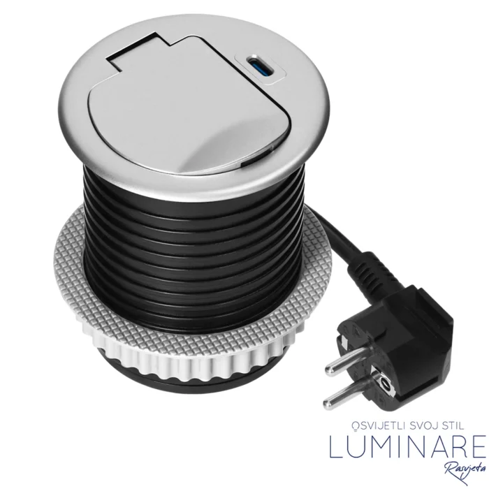 UGRADBENA UTIČNICA ZA NAMJEŠTAJ 1xŠUKO 1xUSB (C) SREBRNA