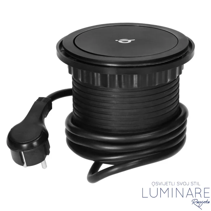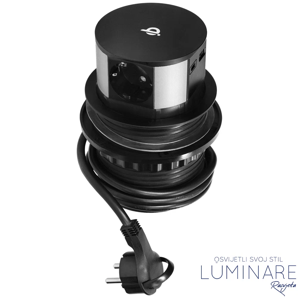 S promjerom montažne rupe od 100 mm i dužinom kabela od 1,5 m, ova utičnica za namještaj lako se integrira u postojeći namještaj. Crna boja s mat završnom obradom pruža elegantan i profesionalan izgled, dok kvalitetna izrada jamči dugotrajnost i sigurnost korištenja.