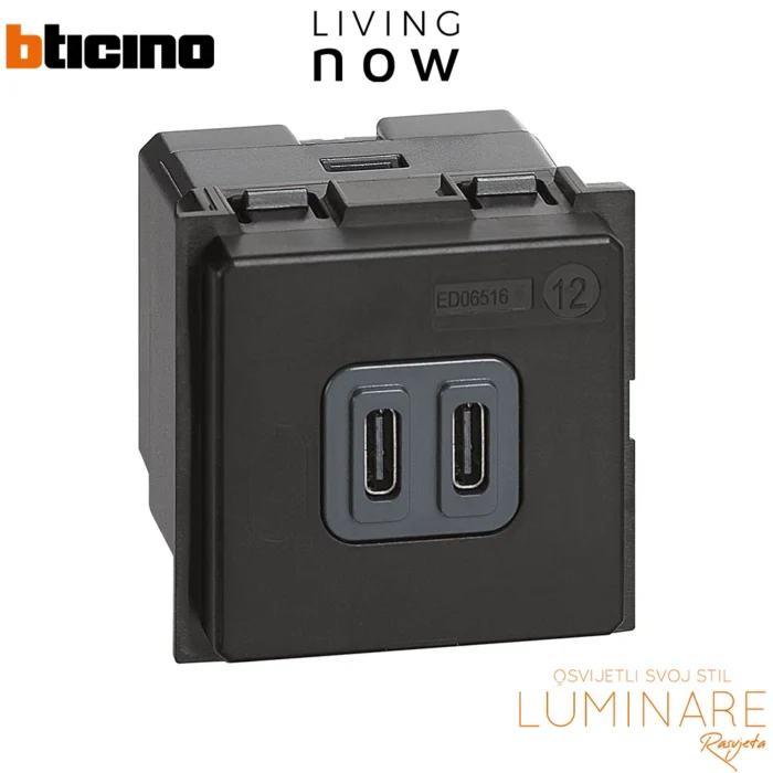 Bticino Living Now 2M USB Utičnica s Dvostrukim Type-C Priključcima – Moderna snaga punjenja (K4286C2)