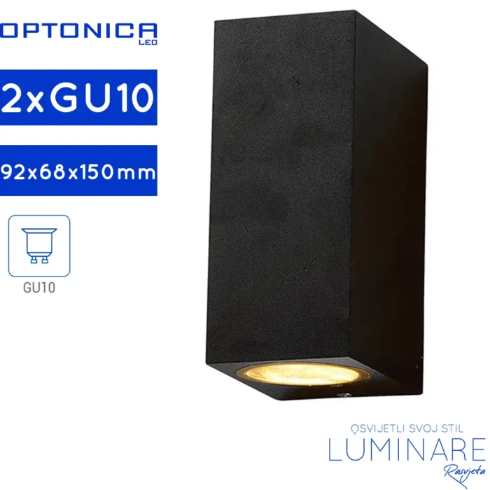 VANJSKA ZIDNA SVJETILJKA 2xGU10 CRNA KVADRATNA