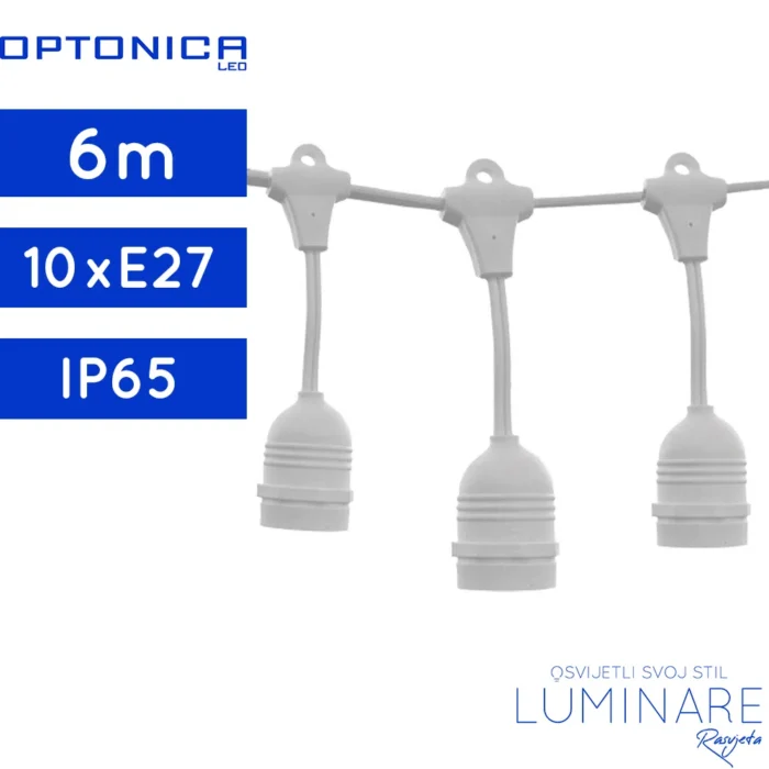 VANJSKI RASVJETNI LANAC 10xE27 6m BIJELI