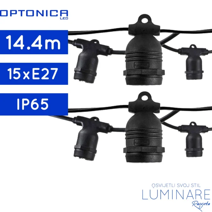 VANJSKI RASVJETNI LANAC SA FIKSNIM GRLIMA 15xE27 14.4m CRNI