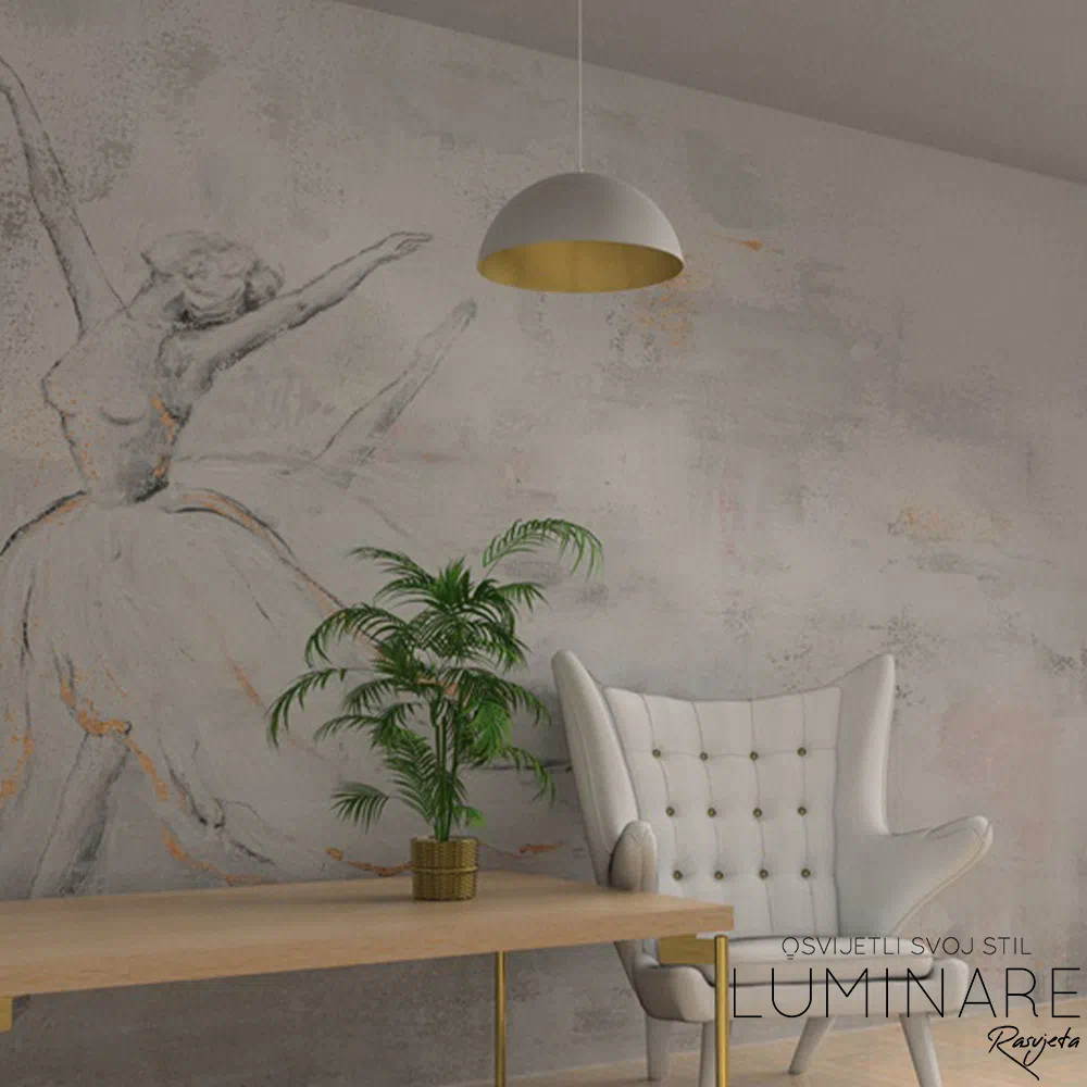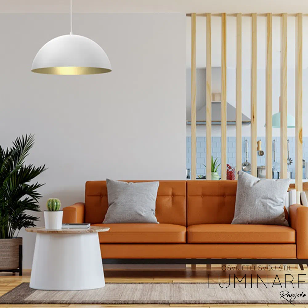 - BETA stropna visilica u bijelo zlatnoj kombinaciji u koju je potrebno montirati E27 žarulju, visilica dolazi bez žarulje